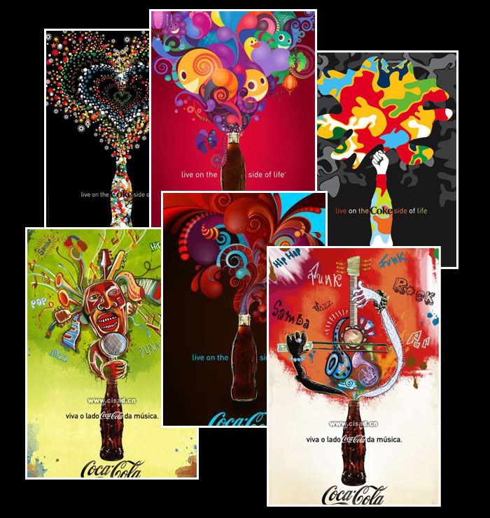 雖然風(fēng)格迥異,卻始終邁著一致的步伐來傳達(dá)可口可樂的百年經(jīng)典。識(shí)別視覺的成功運(yùn)用讓人一眼就能認(rèn)知,這我想就是品牌的力量也是品牌的價(jià)值所在。