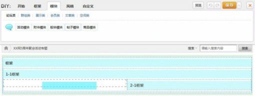 創(chuàng)建新專題后就會(huì)自動(dòng)的進(jìn)入該專題的DIY界面,對(duì)比門戶DIY界面專題的DIY界面更像裝扮個(gè)人空間的DIY界面,增加了風(fēng)格和自定義選項(xiàng),更加方便的個(gè)性化和美化專題頁面;(如圖4)