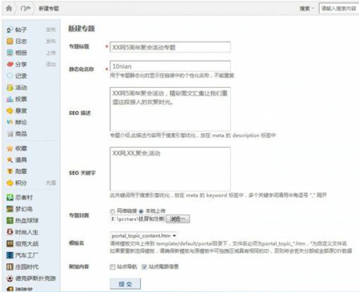 靜態(tài)化名稱:用于專題靜態(tài)化時(shí)顯示在鏈接中的個(gè)性化名稱,不能重復(fù);