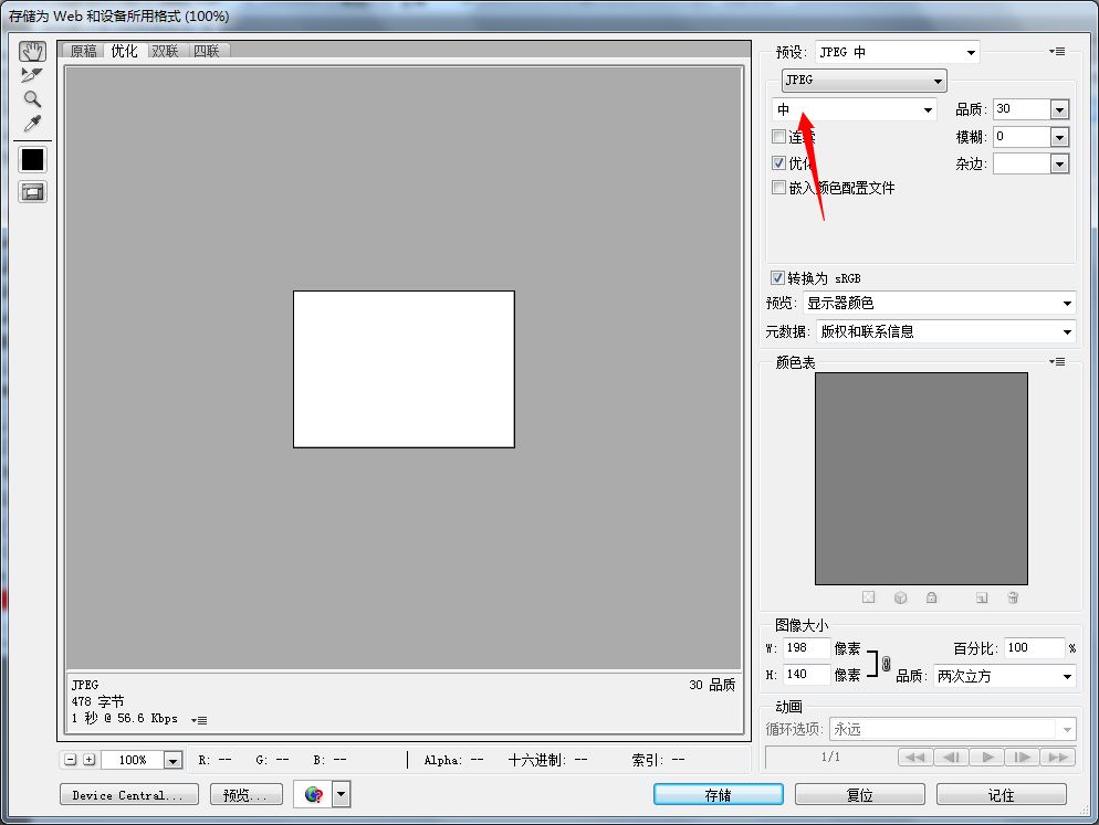 第二步:根據你的需求選擇格式和圖片的質量,如果圖片不需要描述非常細節(jié),可以選擇中,如果有特殊需求,選擇高也沒有多大影響。然后點擊【存儲】即可。