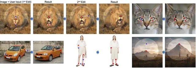 1. 基于點的編輯:DragGAN允許用戶通過在屏幕上拖動和放置點來直接更改圖像。這可以實現比傳統(tǒng)圖片編輯軟件更準確和逼真的調整。